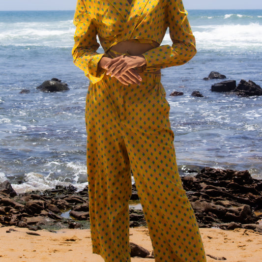 Wrap Crop Jacket and Wide-Leg Pant Set